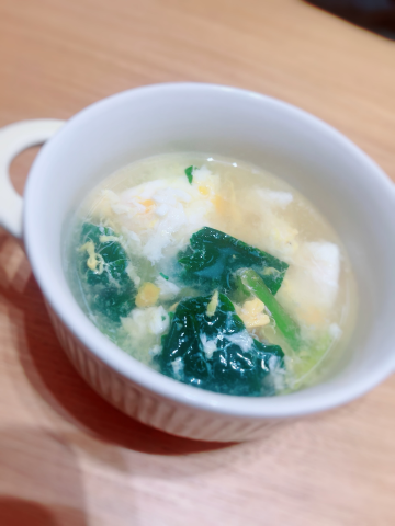 朝からほうれん草とたまごのスープ作った